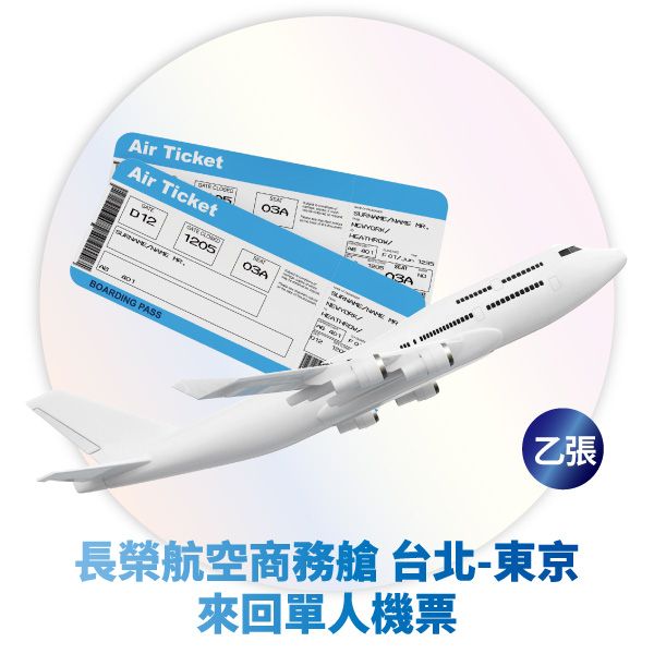 第一名:長榮航空商務艙 台北-東京來回單人機票 乙張